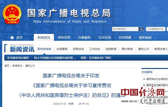 國家廣播電視總局關(guān)于學(xué)習(xí)宣傳貫徹《中華人民共和國英雄烈士保護(hù)法》的意見