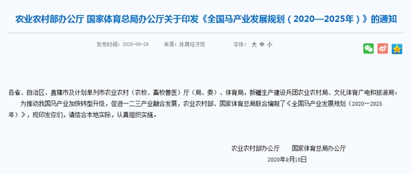 全國馬產業(yè)發(fā)展規(guī)劃(2020—2025年)