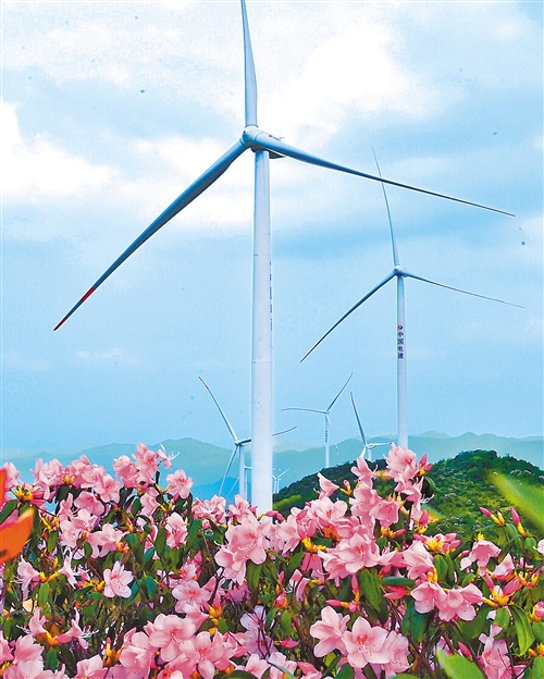 江西省贛州市會(huì)昌縣清溪鄉(xiāng)盤古嶂風(fēng)力發(fā)電場,一臺(tái)臺(tái)風(fēng)力發(fā)電機(jī)矗立在群山之巔。清溪鄉(xiāng)盤古嶂風(fēng)力發(fā)電場是會(huì)昌縣首個(gè)風(fēng)電項(xiàng)目,共有26臺(tái)2000千瓦風(fēng)力發(fā)電機(jī)組,總裝機(jī)容量5.2萬千瓦,采用全球領(lǐng)先的低風(fēng)速發(fā)電技術(shù),年利用小時(shí)數(shù)達(dá)到2150小時(shí),每年發(fā)電量相當(dāng)于節(jié)約標(biāo)煤38萬噸。