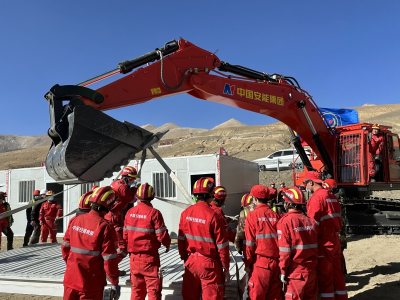 1月9日,在前方指揮部的統(tǒng)一調(diào)度下,繼完成受損房屋搜尋、用電需求保障、安置帳篷搭設(shè)、協(xié)助轉(zhuǎn)運(yùn)重傷員等任務(wù)后,為了保障受災(zāi)群眾溫暖過(guò)冬,中國(guó)安能在嘎旦村、玉白村方向組織開(kāi)展場(chǎng)地平整作業(yè),并進(jìn)行活動(dòng)板房的搭設(shè)。在嘎旦村投入60余人、10余臺(tái)重型救援裝備全力投入板房搭設(shè)工作。過(guò)程中,挖掘機(jī)、吊機(jī)等重型裝備與救援人員共同協(xié)作,搭建工作進(jìn)展迅速。