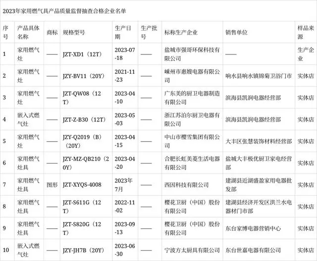2023年度鹽城市市場監(jiān)督管理局委托南京市產(chǎn)品質量監(jiān)督檢驗院(南京市質量發(fā)展與先進技術應用研究院)組織實施家用燃氣具產(chǎn)品市級監(jiān)督抽查。本次抽查計劃10批次,抽到10批次,經(jīng)檢驗合格10批次。